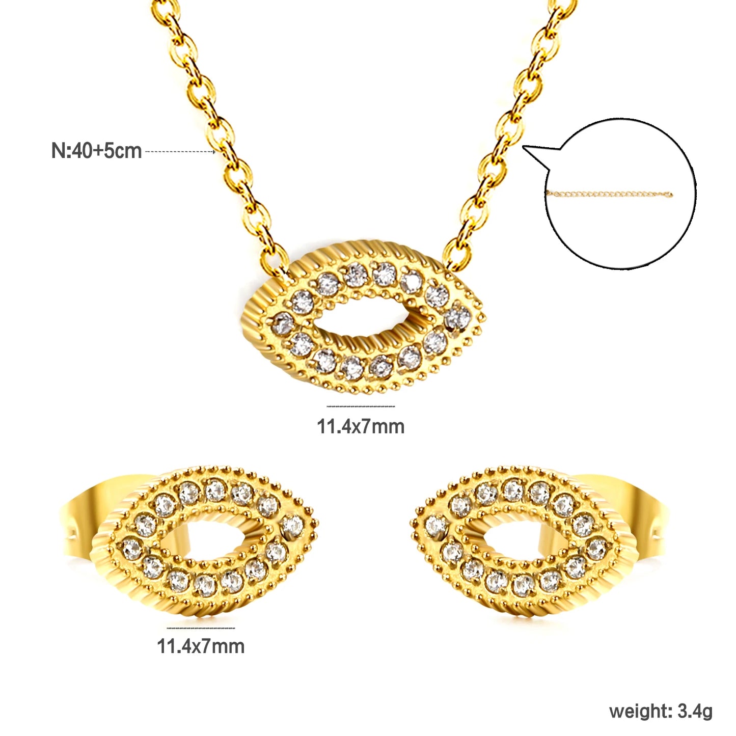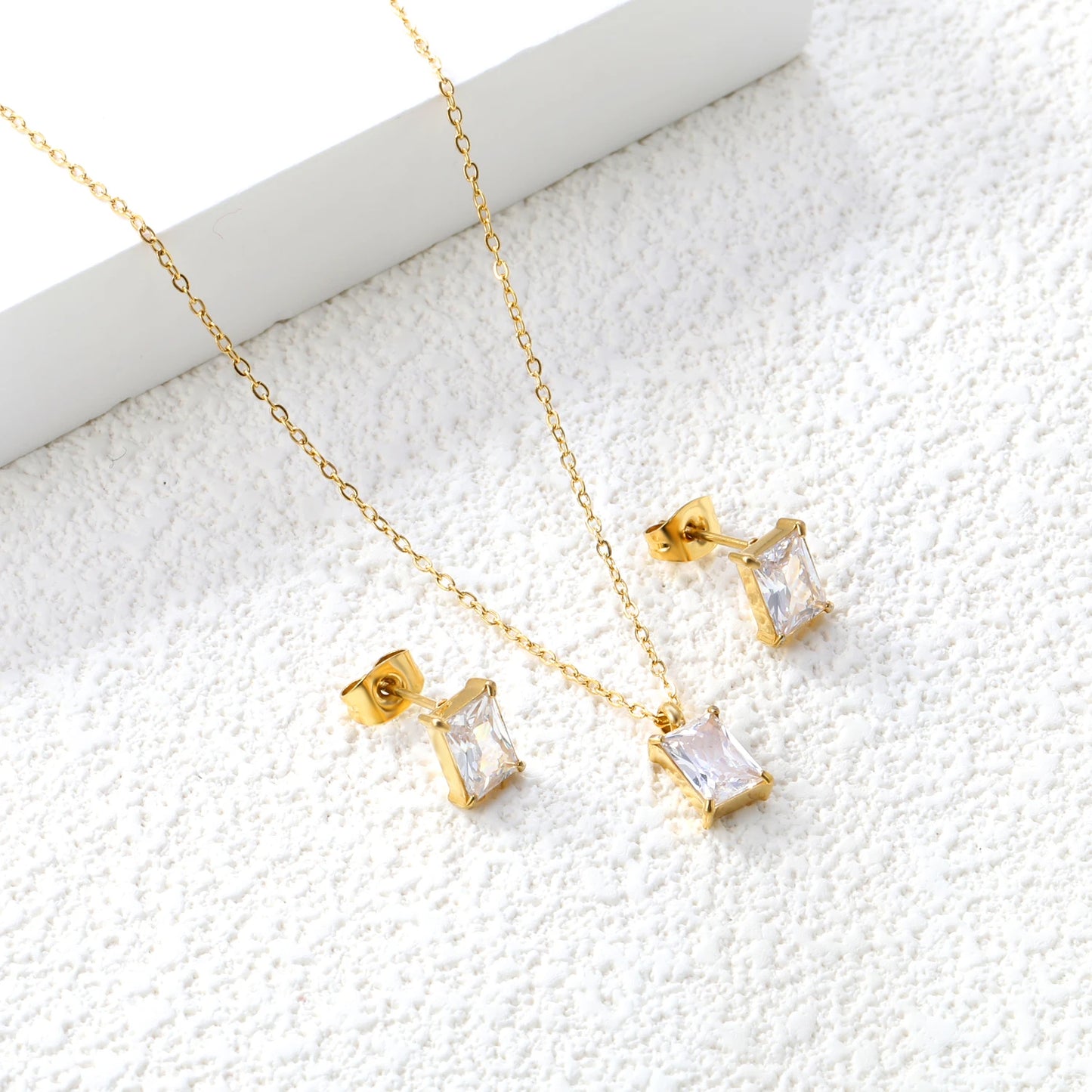 Elevate your style with the Jewelry Set, featuring a stunning necklace and earrings set crafted from top-quality stainless steel. Adorned with sparkling cubic zirconia, this set adds a touch of glamour to any outfit. Perfect for parties, daily wear, or shows, the set is designed to complement your style while offering durability and elegance. The environmentally friendly material ensures it’s lead, nickel, and cadmium-free, making it safe to wear. Available in a chic gold color, this set is the ideal accessory for any occasion.