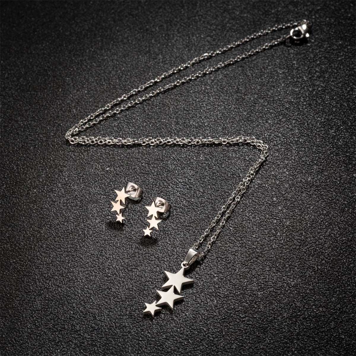 Luxury Stainless Steel Wedding Bride Jewelry Set Multiple Stars Earrings And Necklace Gold Color Clavicle Chain Joyas Mujer