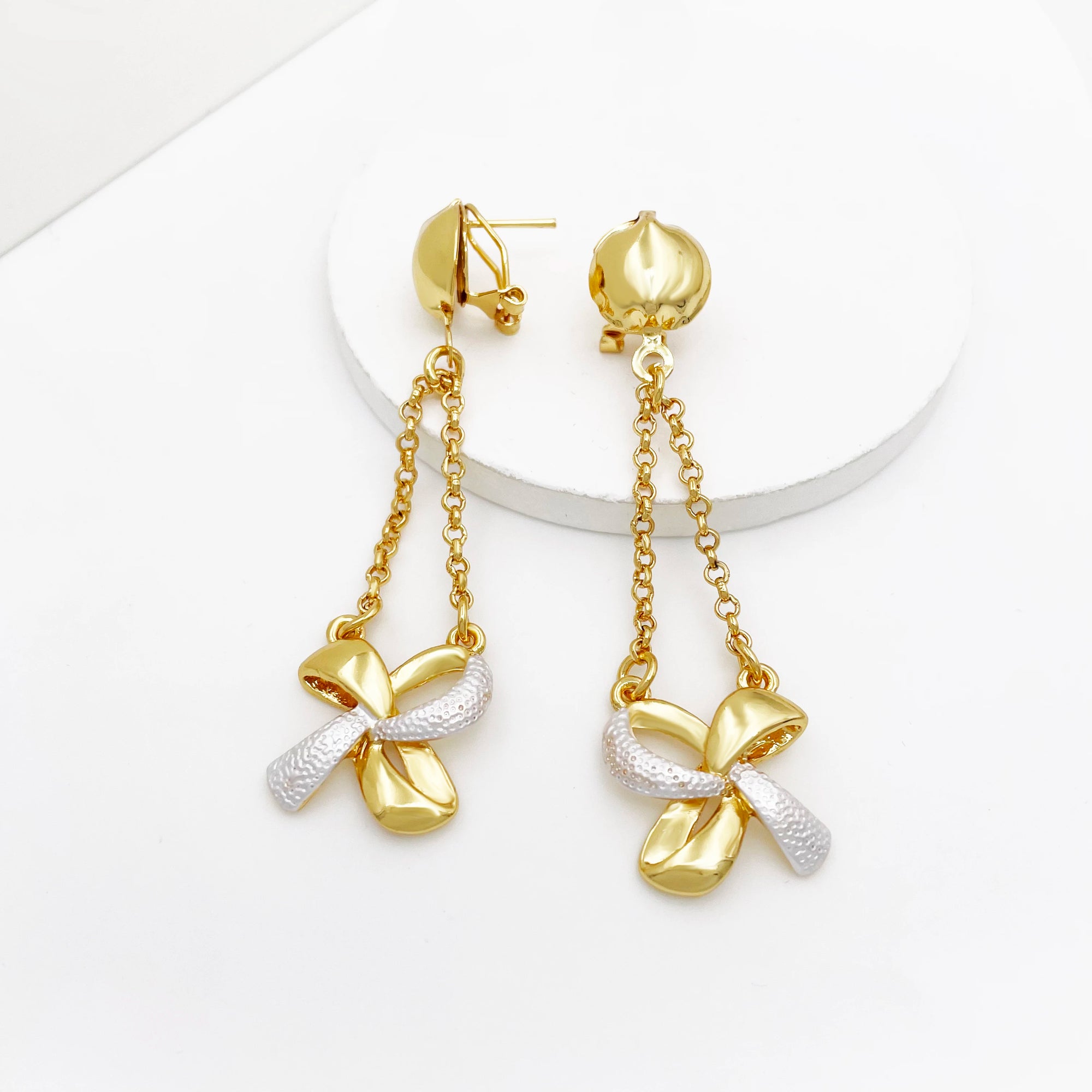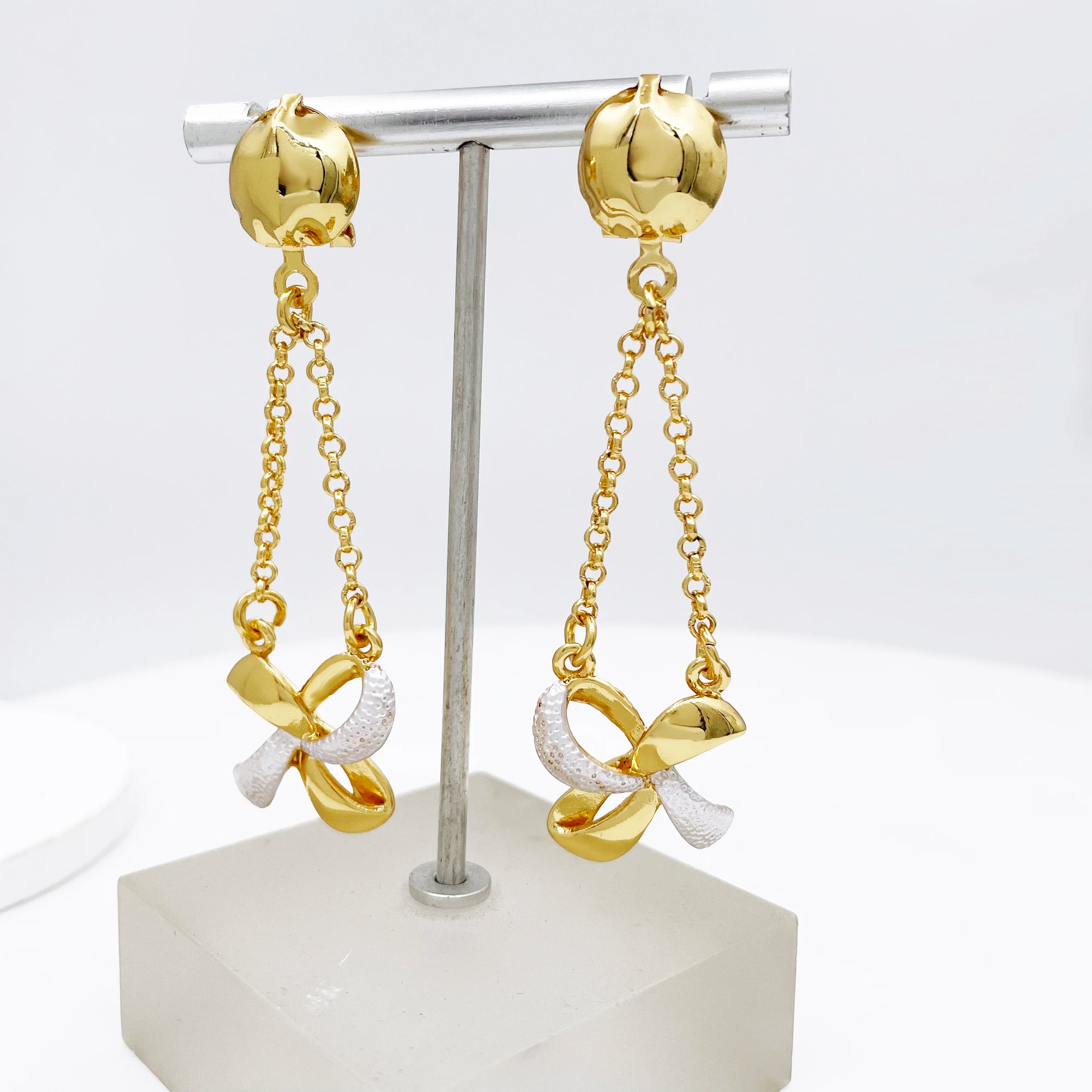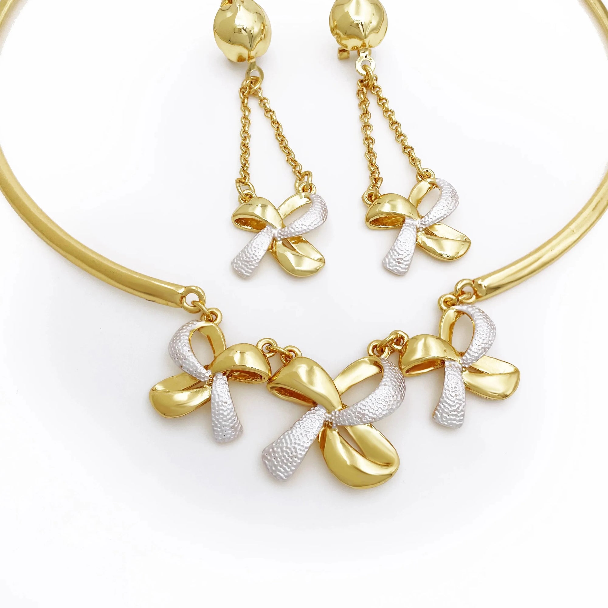 New Women Jewelry Two Tone Classic Design Necklace Set Long Drop Earrings Bracelet And Ring Full Set Jewelry Party Trending