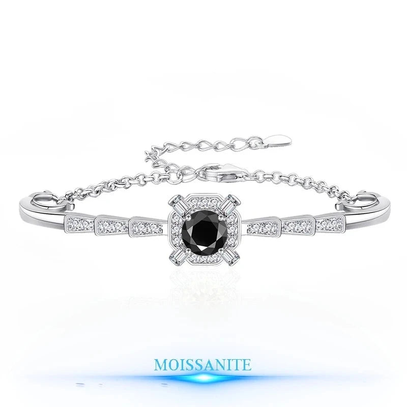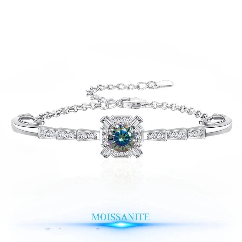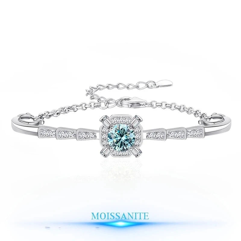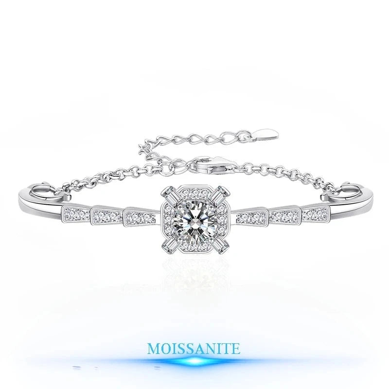 100% 925 Sterling Silver 1CT D Color Moissanite Chain Charm Bracelet Bangles for Women Wedding Party Jewelry