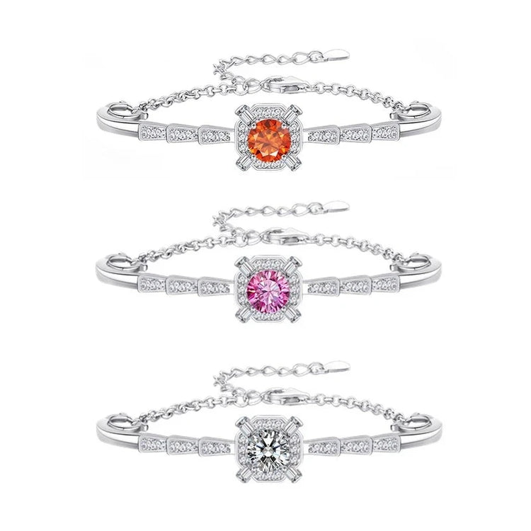 Adorn your wrist with elegance and sophistication on your special day with our exquisite Charm Bracelets. Crafted from sterling silver stamped with 925 Sterling, these bracelets feature dazzling Moissanite stones, adding a touch of luxury to your bridal ensemble. With a weight of 7.6g, they offer both style and comfort, making them perfect for weddings and other formal occasions. The trendy geometric pattern adds a modern flair, while the GDTC certificate ensures their quality and authenticity. These bracelets can be customized to suit your preferences, making them a personalized accessory for your wedding, engagement, anniversary, party, or daily wear. Elevate your look with these 100% 925 sterling silver charm bracelets, designed to make every moment memorable.