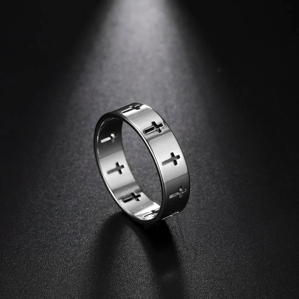 This hollow cross ring is made from durable stainless steel and features a sleek, trendy design. It is available in multiple colors, including steel, black, gold, and rose gold. Ideal for daily wear or special occasions, the ring offers a perfect balance of style and comfort.
