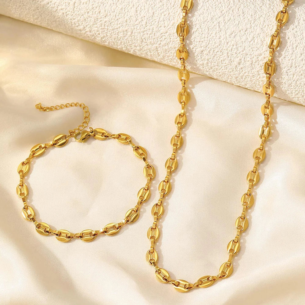 Stainless Steel Jewelry Set Necklaces Bracelet with Cute Pig Nose Hollow Carving High-end textured jewelry set For Women Jewelry