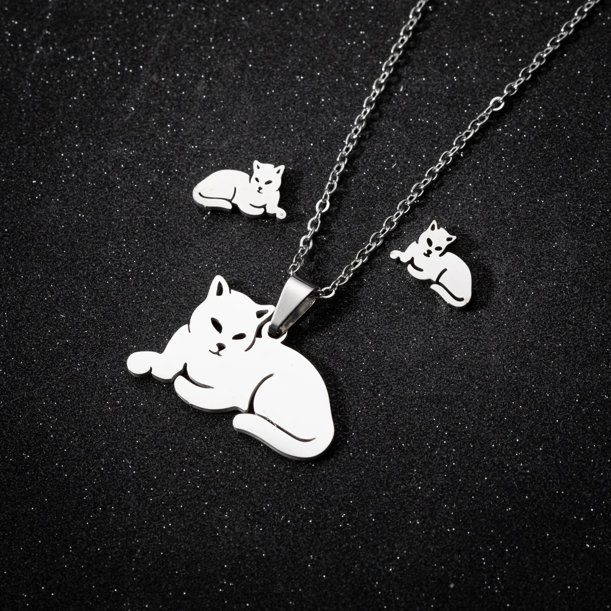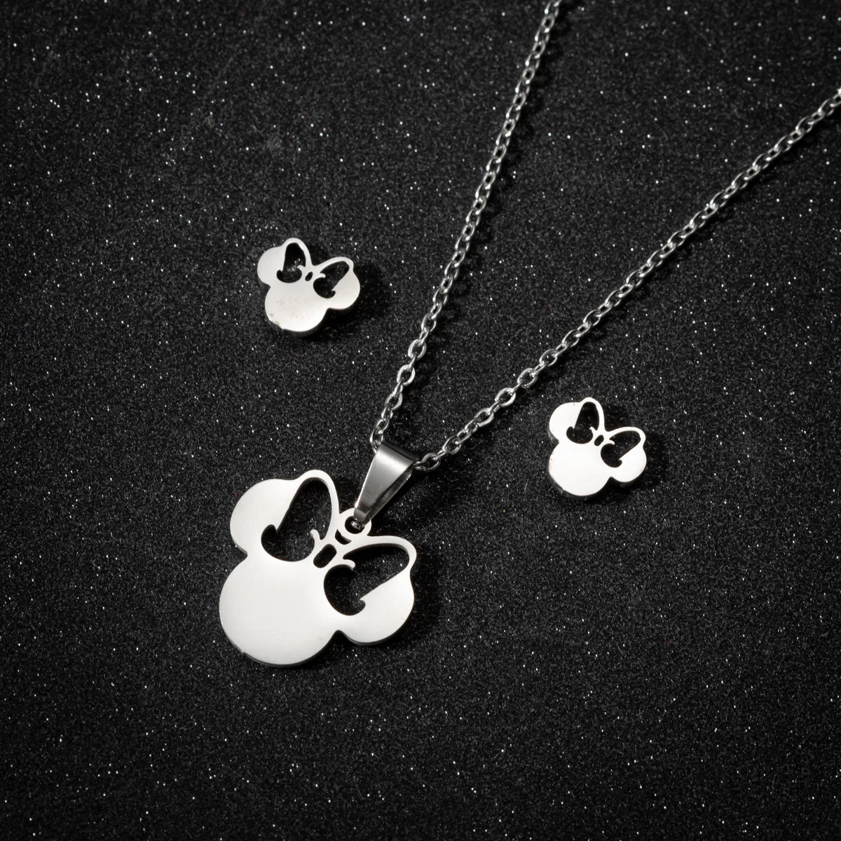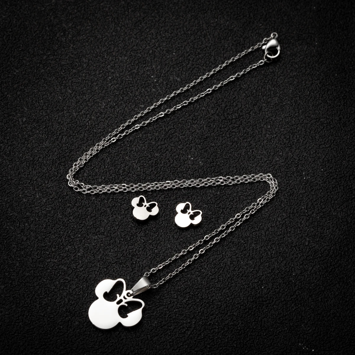 Stainless Steel Jewelry Sets For Women Necklace And Earing Anime Cute Cartoon Bow Mouse Chain Necklace Choker Desinger Charms