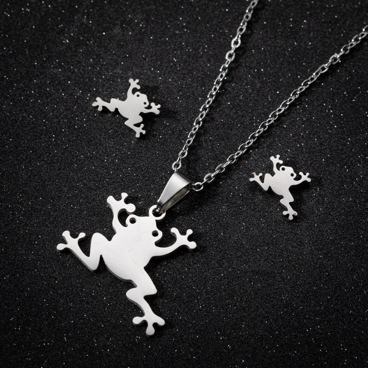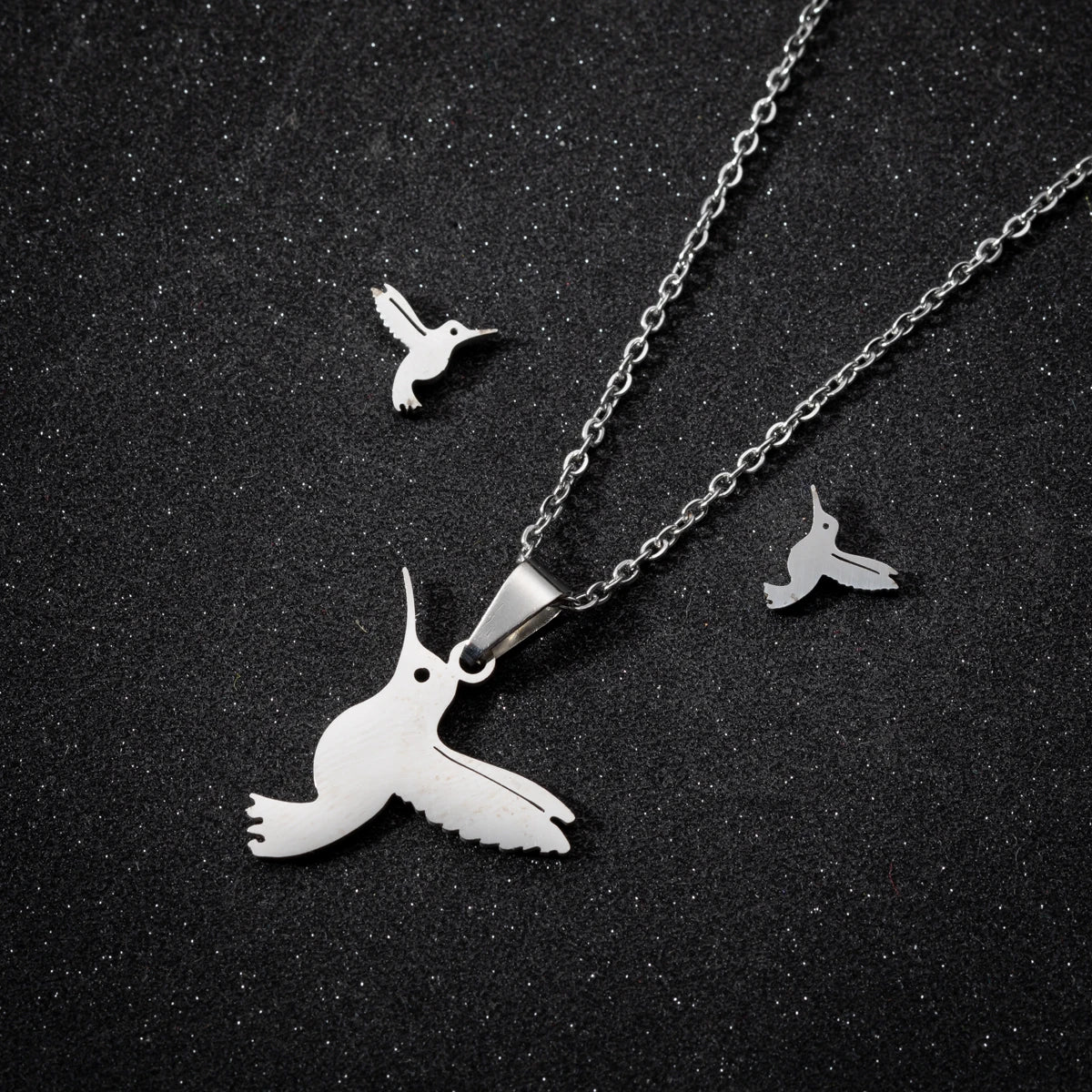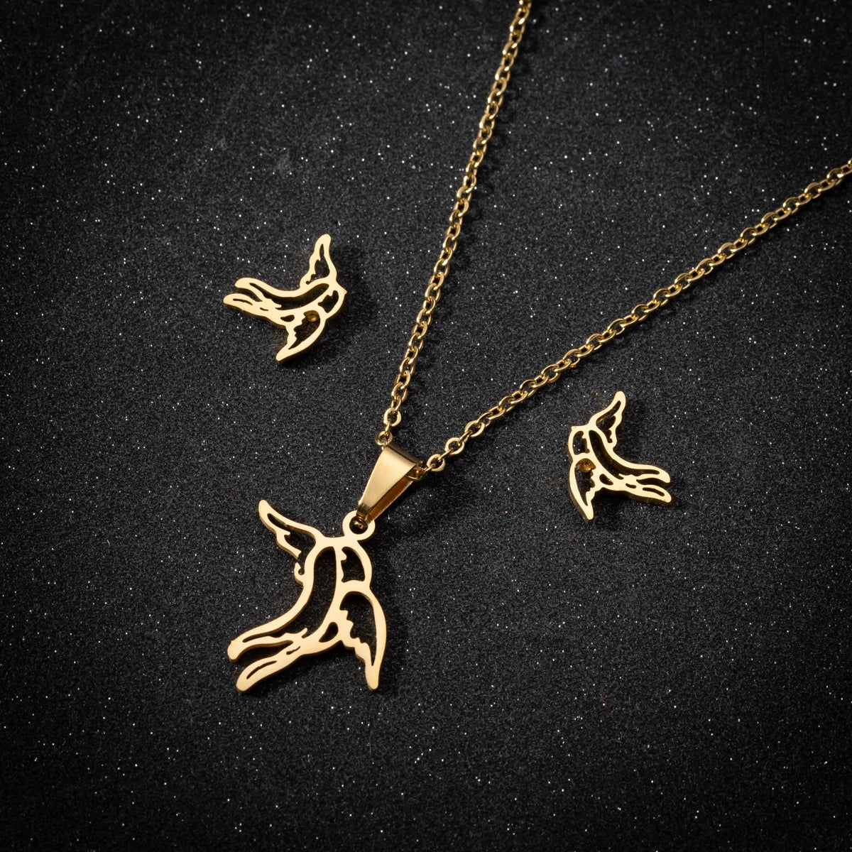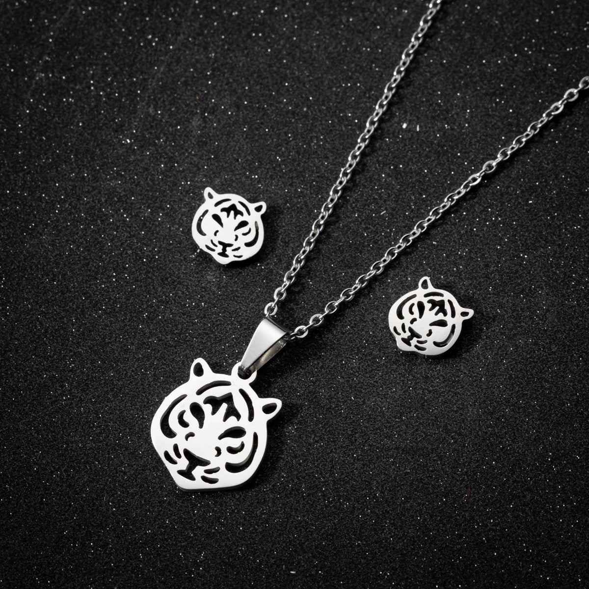 This trendy stainless steel jewelry set for women includes a necklace and earrings in silver and gold colors. The set is made from durable stainless steel, offering a stylish and long-lasting option for parties and special occasions. The product weighs around 10g and comes packaged in an OPP bag. It’s designed to be resistant to allergies and fading when properly cared for.