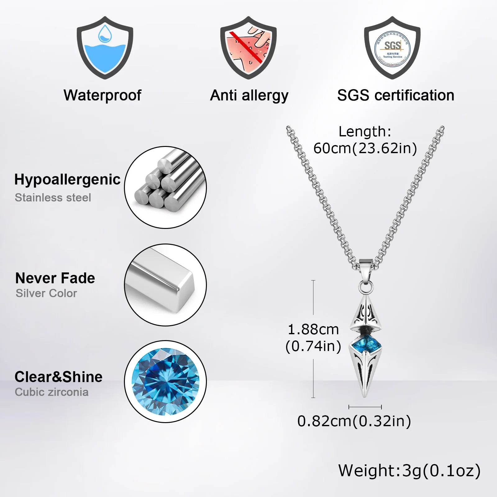 Stylish Blue Stone Necklaces for Men Women,Stainless Steel Geometric Pendant Collar,Valentine's Birthday Party Gift for Him