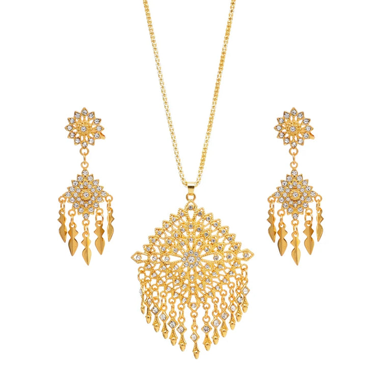 Thailand Women Necklace Set Ethnic Alloy Tassel Rhinestones Drop Dangle Earring Sets Bohemian Pendant Jewelry Sets Feminina