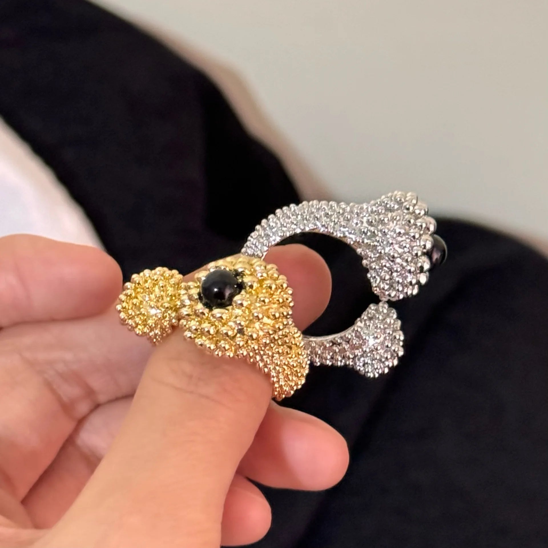 Vintage Gold Plated Black Agate Metal Chunky Open Rings for Women Girls Exaggerated Charm Party Jewelry Accessory
