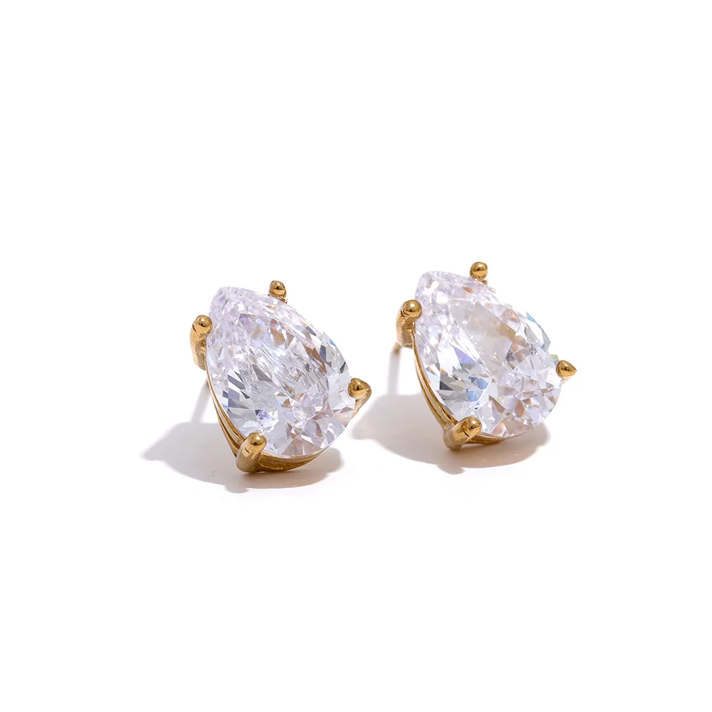 Delicate Shiny Cubic Zirconia Stainless Steel Water Drop Pendant Necklace Stud Earrings Waterproof Jewelry Chic Party Gift
